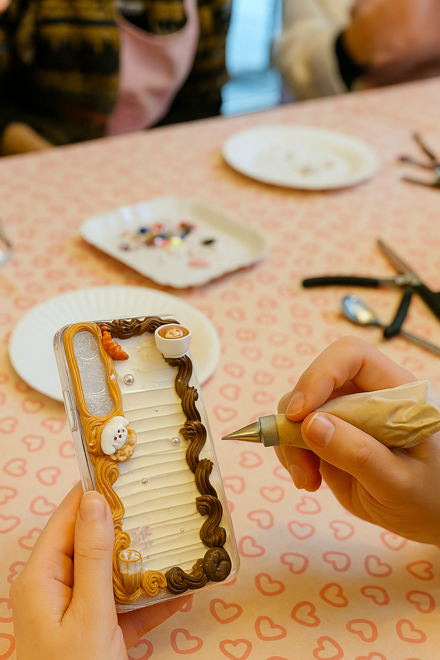 Dans cet atelier, tu personnalises une coque de téléphone avec l’effet “crème chantilly” des créations Decoden. Le résultat : une coque unique, colorée et fun, qui te ressemble.